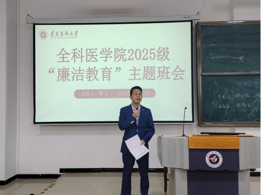 龙奉玺结合“廉洁教育”主题,围绕学生成长发展提出了有效建议。她强调,立德是人才培养的基础,同学们要将廉洁理念融入专业学习、日常生活和职业规划,立足专业、着眼长远,以廉洁之心涵养成长成才之基。她指出,强健的体魄是未来扛起医者重任、守护人民健康的前提,同学们要养成规律运动习惯,以强健体魄承担“健康守门人”的责任;要高度重视安全问题,时刻警惕网络诈骗、宿舍用电等风险,增强自我保护意识。她鼓励同学们要善用学习资源、精进学习方法,更要在校园实践中涵养廉洁品格,将“清白做人、干净做事”的准则融入日常,让大学生活成为培育廉洁素养、迈向合格医者的重要历程。