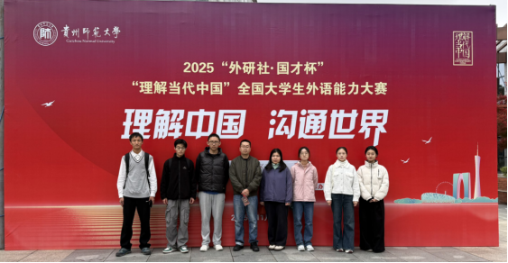 为深化高校外语教育改革,提高外语人才培养质量,由贵州省教育厅主办的2025“外研社·国才杯”“理解当代中国”全国大学生外语能力大赛于11月1日在贵州师范大学举行。该比赛属于教育部公布的全国大学生学科竞赛榜单中的B类赛事,含英语演讲、综合能力和短视频等多个赛项。我校学生在比赛中表现出色,最终斩获2金5银3铜。