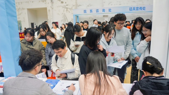 为助力毕业生有效求职,招聘会还为毕业生提供能力提升、政策及AI赋能在内的“一站式”就业指导支持,学校招生就业处联合遵义市就业局开设简历一对一指导服务,累计完成简历优化200余份;学校武装部工作人员现场宣传和解读征兵入伍政策,吸引众多学生驻足咨询。