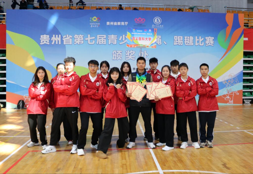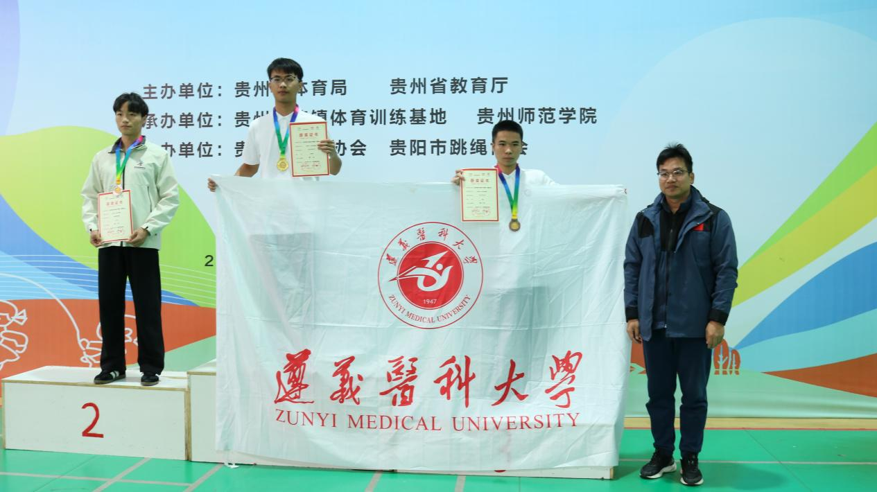 近日,由贵州省教育厅、贵州省体育局联合主办的2025年贵州省第七届跳绳、踢毽比赛圆满落幕,本次赛事吸引了来自全省257所学校同场竞技。我校花样跳绳队凭借出色发挥,在竞争最为激烈的本科组中取得了两金一银一铜的优异成绩。